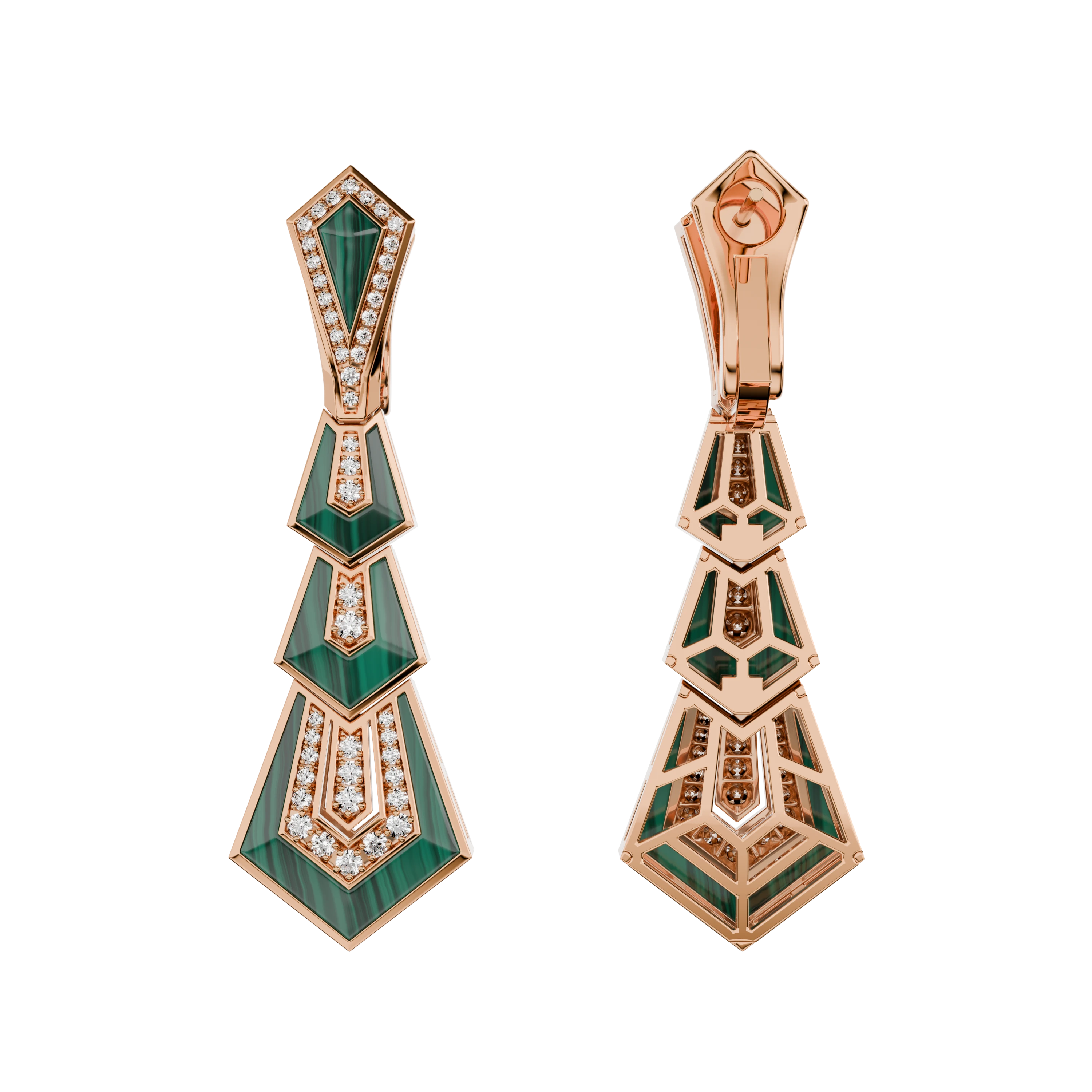 Earrings, Rose Gold, Diamonds, Malachite