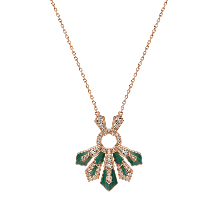 S Motif Pendant, Rose Gold, Diamonds, Malachite