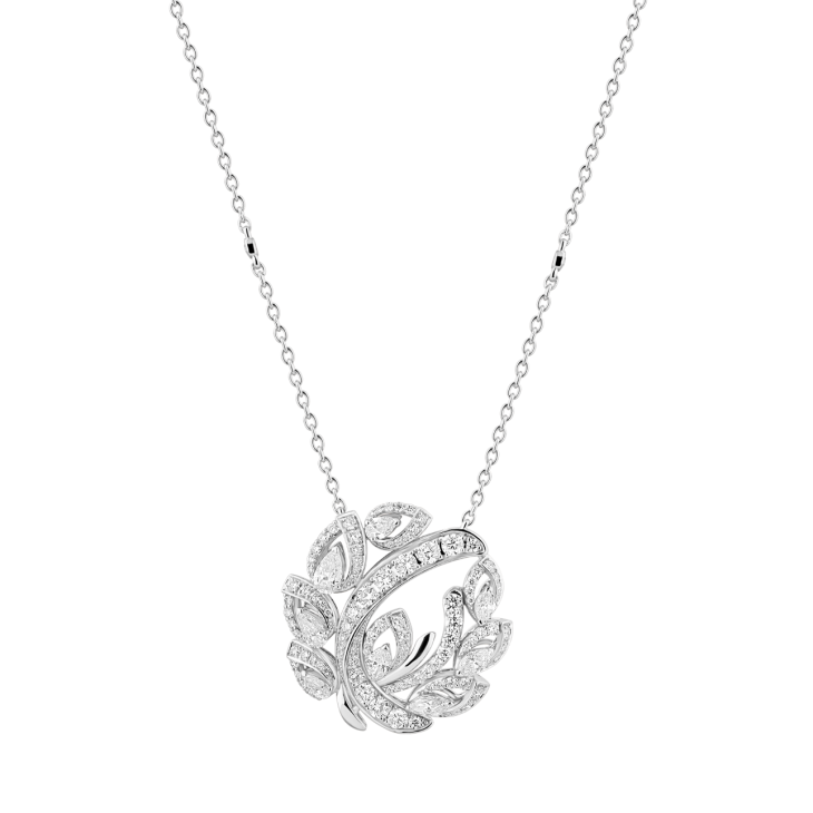 S Motif Pendant, White Gold, Diamonds
